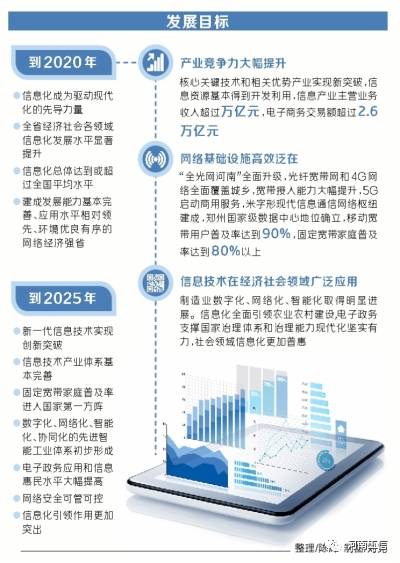关键词:统筹信息基础设施布局,加快大型公共数据中心建设,加快构建下一代信息网络设施,不断完善普遍服务,建设“宽带中原”,打造以郑州为核心的米字形现代信息通信枢纽。